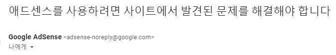 "애드센스를 사용하려면 사이트에서 발견된 문제를 해결해야 합니다."