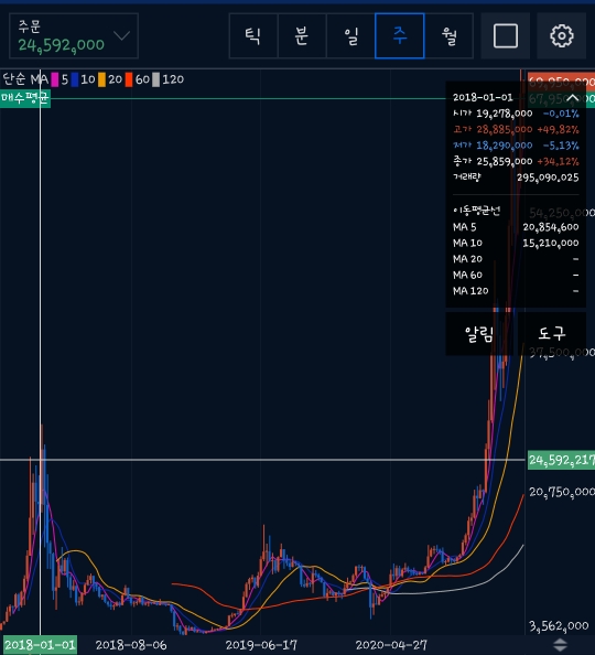 주식시장과는 다르게 암호화폐시장의 경우 1년 365일, 24시간 그 시장이 지속되기때문에.. 그리고 그 가치가 무한정 올라가기도하고 무한정 떨어지기도하고.. 하기때문에 하이리스크 하이리턴의 시장이다.