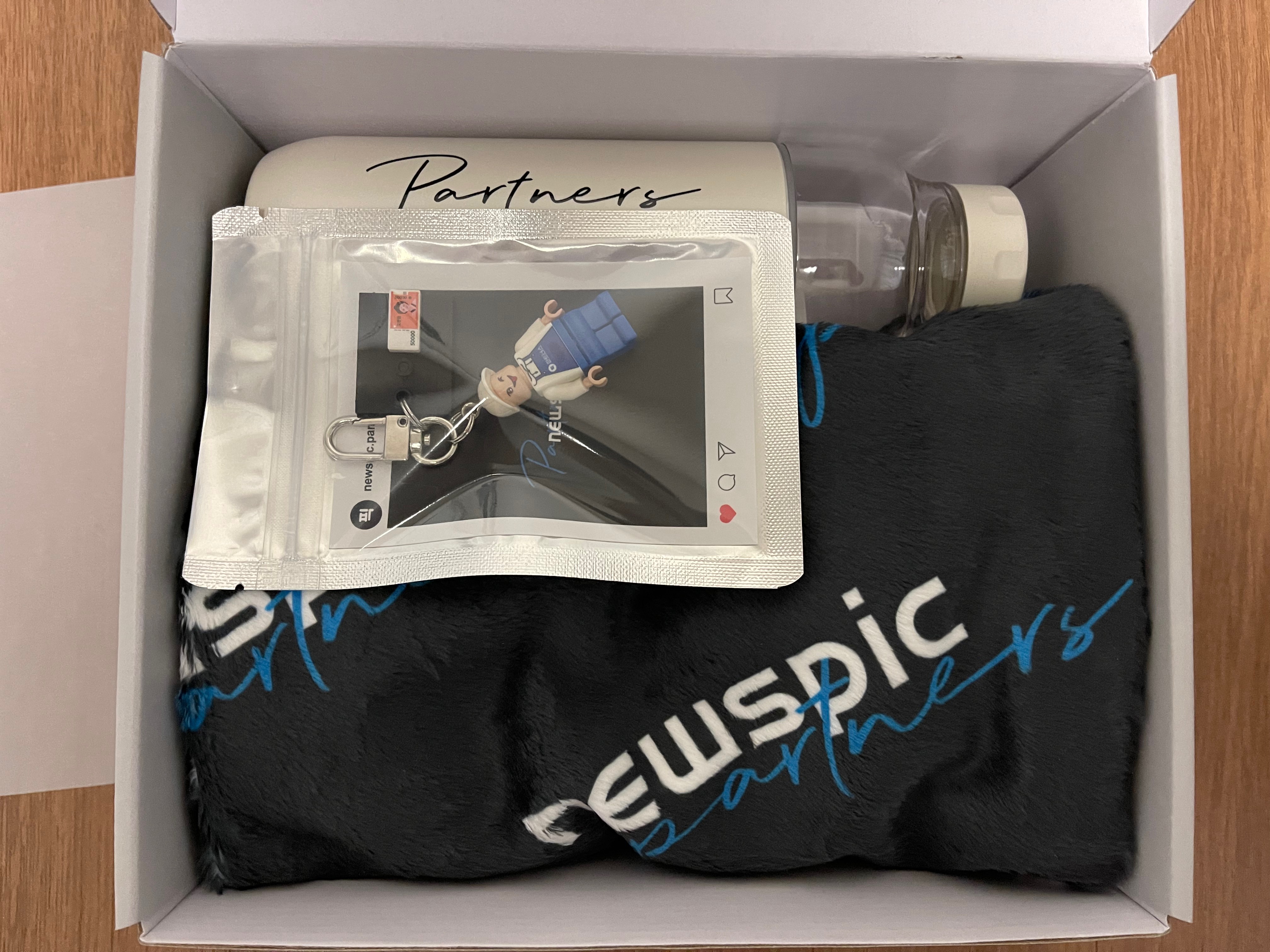 newspic partners brand goods라는 문구가 적힌 반투명의 종이가 들어있는데.. 안에 있는 물건들이 더 고급져보이도록 하는 효과가 있었다. 이제 슬슬 안에 뭐가 들어있는지 궁금할거 같다.
