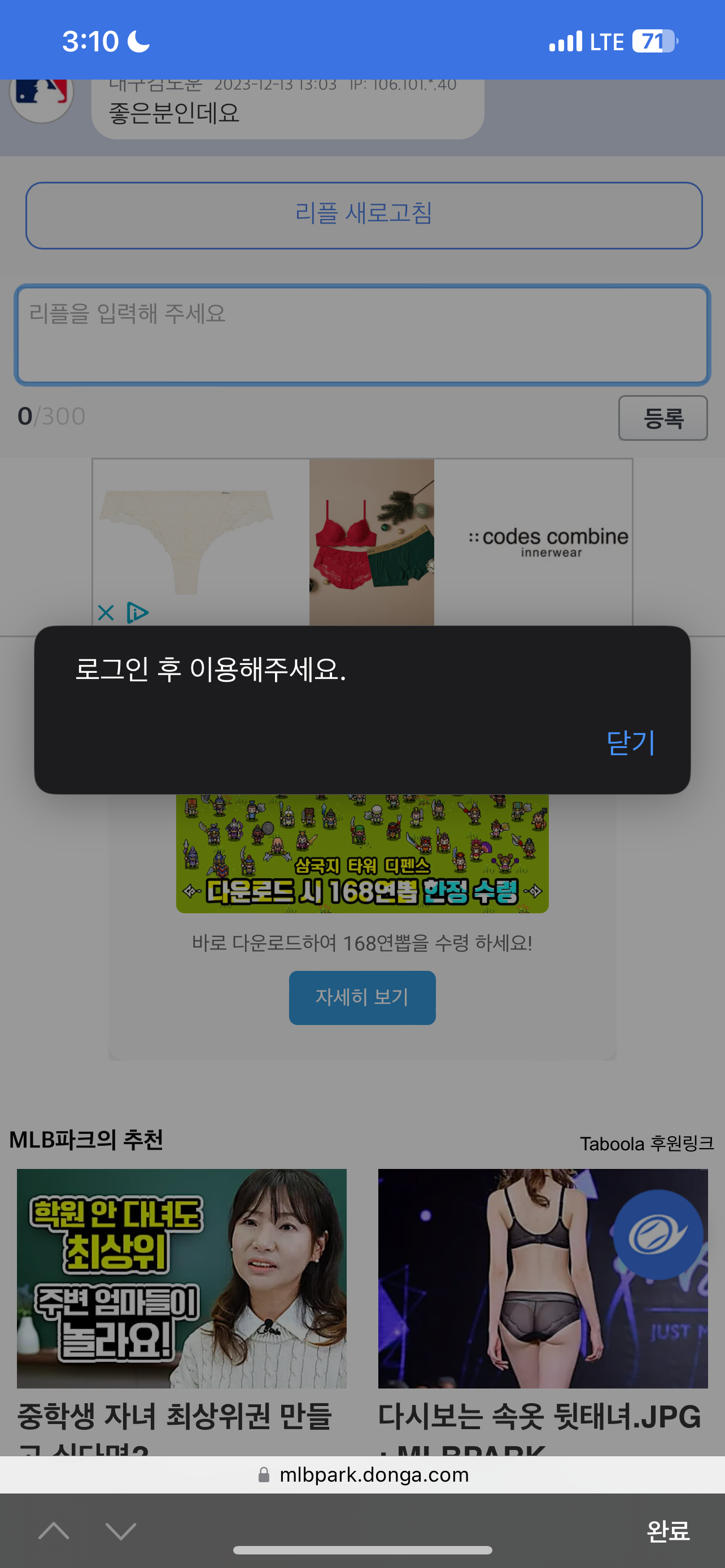 위에 그림에서 로그인하라고 뜨는 것은 댓글 작성하기를 눌렀기 때문이라고 생각하시면 되겠습니다.